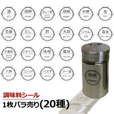 バラ【 調味料 シール 】 追跡番号あり 20種スパイス ステッカー 円形 耐水丸型 キッチン ラベル シール 防水 透明 Cyberplugs